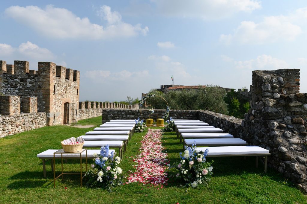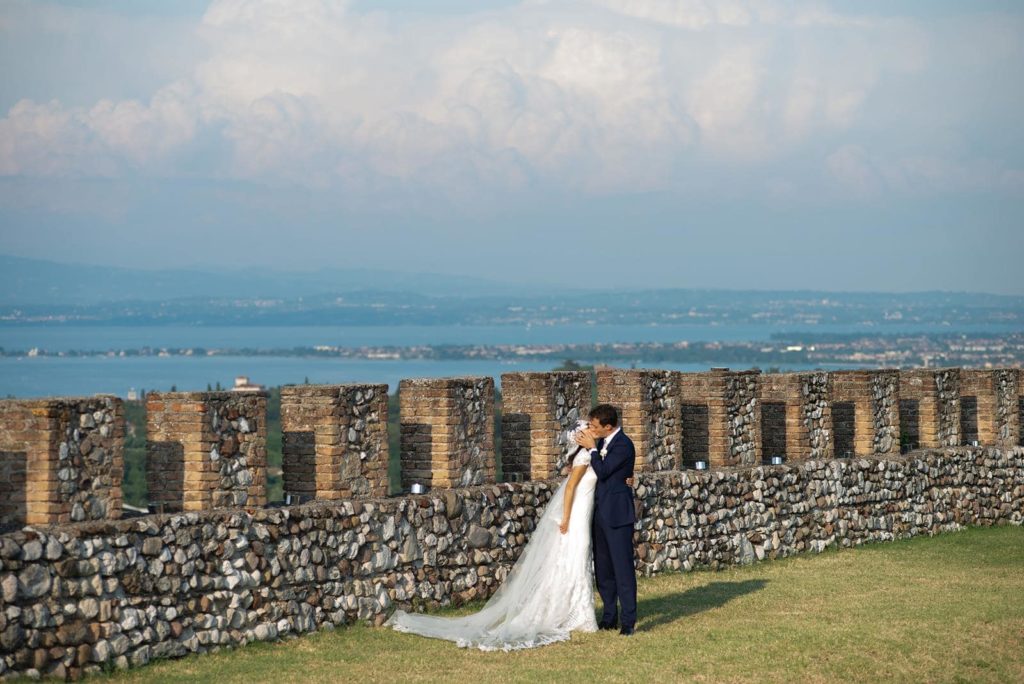 Gli sposi potranno svolgere il loro servizio fotografico direttamente nella location, passeggiando lungo i camminamenti di ronda con una meravigliosa vista sul lago e sul borgo antico di Lonato, così come sulle terrazze delle due torri di avvistamento che regalano un panorama di sfumature incantate tra cielo, acqua e pianura.