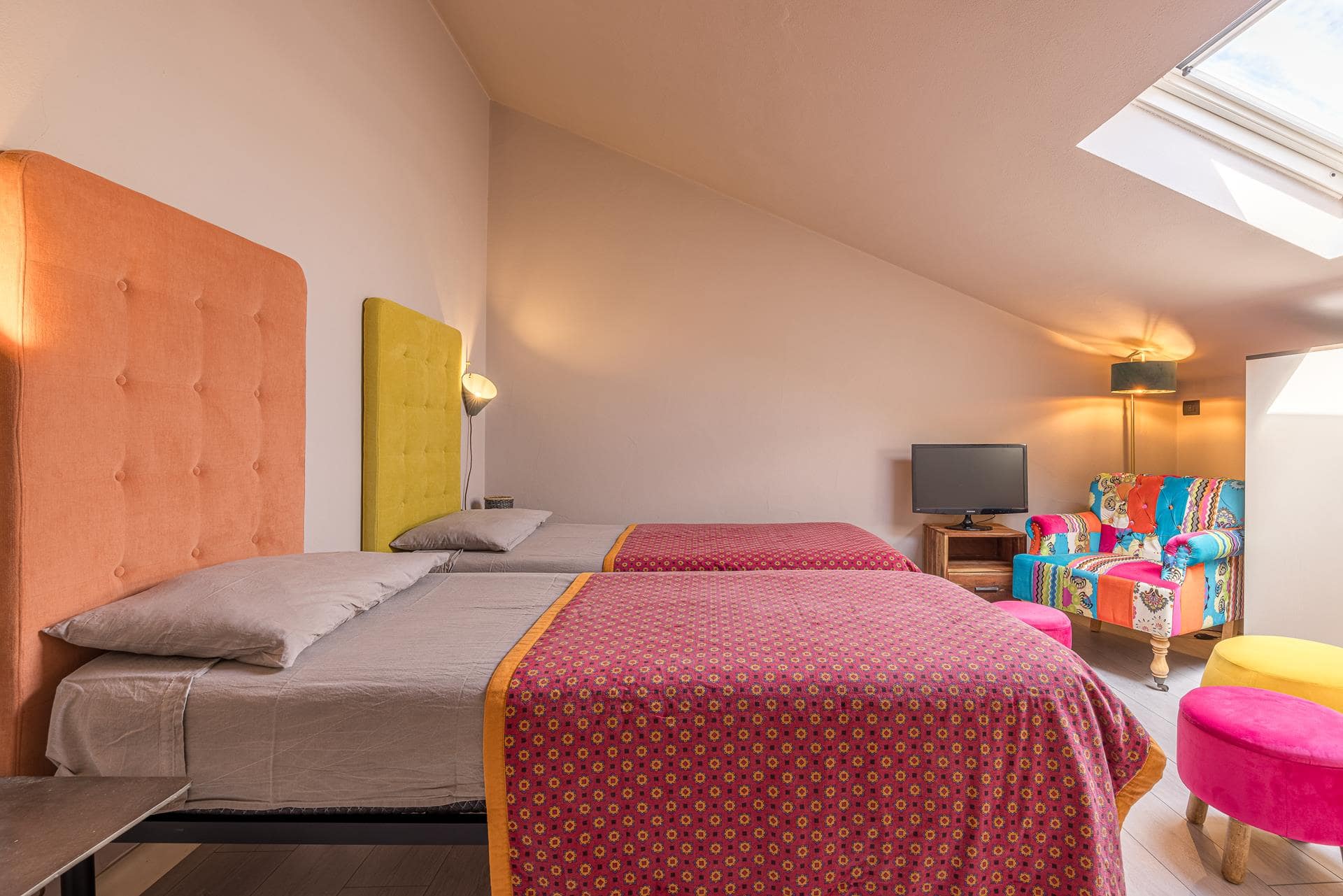 All’ultimo piano si trova una camera doppia con due letti separati ed un servizio completo con doccia.